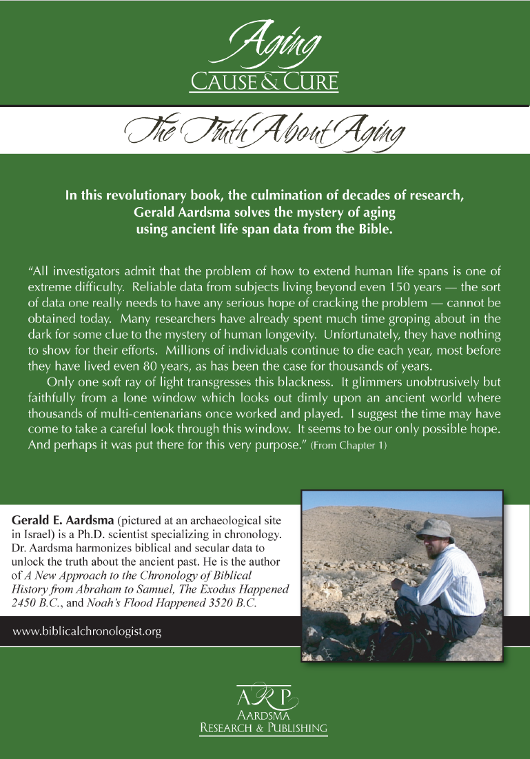 Concurrent with all of this research, I pursued a lifelong interest in why, according to Genesis, humans had lived so much longer before the Flood than we do today. I began to tackle that question full time with the advent of the new millennium. This little book exists to share what I have found during the past seventeen years of all-out, strenuous research effort on that question.