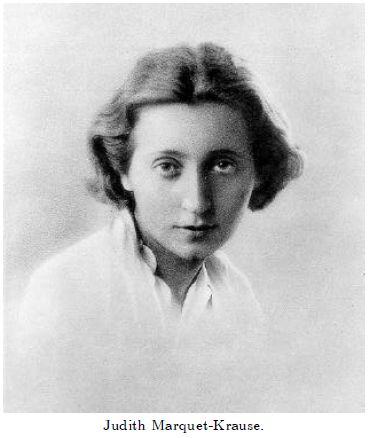 I am interested in nothing more than the sole desire to see continued the dear memory of the child prematurely taken by her disease; her miserable mother must strive to express the sorrowful memories that set down for the reader the traits of Judith Krause-Marquet.Born at Sedjera in 1906, in that enchanted part of Galilee from where one can see the mountains of Nazareth on one side and Mt. Tabor on the other, there she spent her earliest years. There she received her first moral and intellectual education and, in the house of her father, was instilled with a sense of honor and the love of work. From her tender infancy, a noble and generously inspired person.